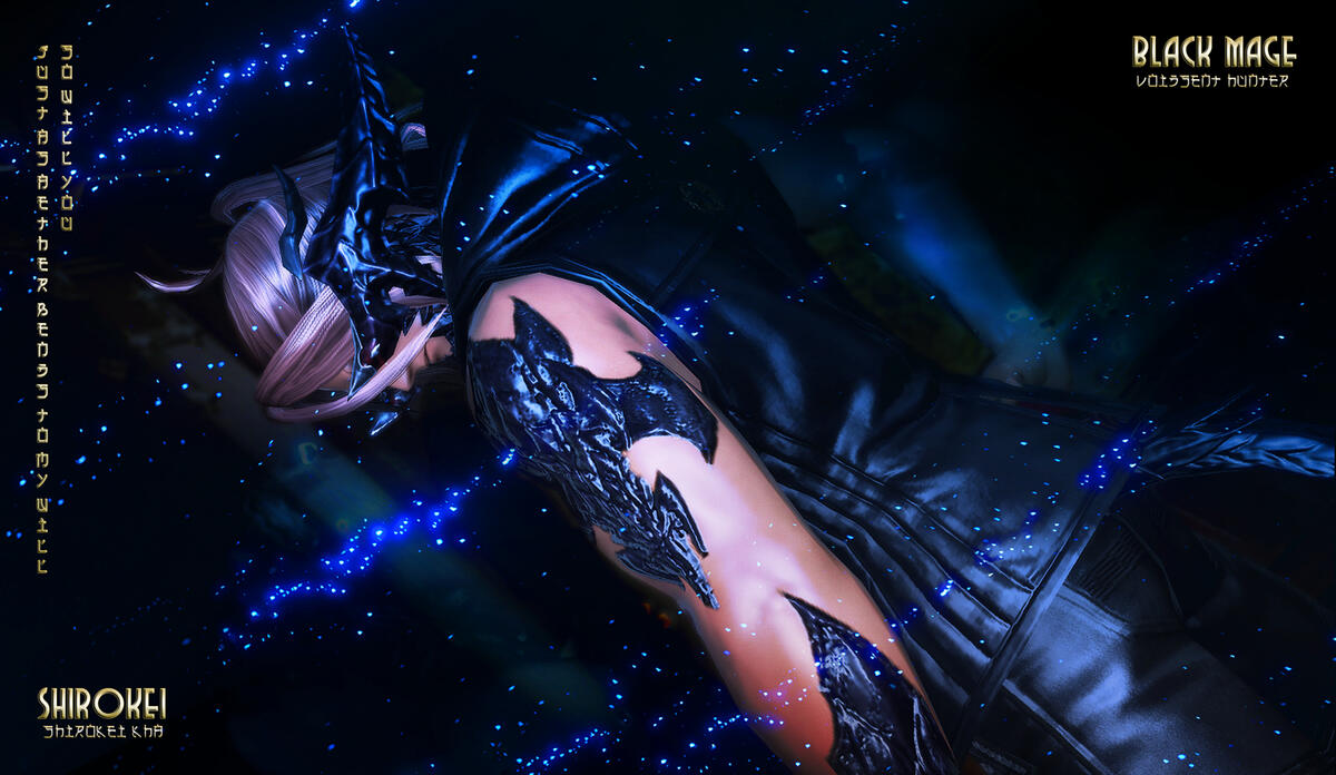 Shirokei's stoic facial features and towering form are easy to notice as his gaze sweeps the floor of potential contacts to associate with. His presence is confident, rarely if ever getting flustered by questions thrown at him as he prefers to face these things head on. He's fearless in his demeanour never stepping away from a challenge given that he sees someone to be worthy of his time.His posture is composed, his strides unhurried and calculated when he approaches others fully aware of the effects his presence tends to have on others. His presence demands respect and those who do not understand nor learn to show it, are quickly forgotten by the voidsent hunter as he carries on his way. Those unfotunate souls however who dare continue to challenge him are swiftly shown their place.One can encounter this black mage voidhunter when he's sitting at a tavern drinking casually and perhaps in the midst of holding a flirty conversation with a lady or lad that has caught his attention. He's got his eyes often on the more social individuals whom have the courage to come talk to him or even the guts to challenge him.Either way he's drawn to people with enough confidence to stand by him rather than them getting intimidated by his presence. Strong characters with personality to them are what he'd call interesting encounters that he could potentially greatly enjoy in more ways than one.Other times you can see him out on a hunt for the voidsent beasts and their masters, acting upon the creed of his black mage order dedicated to hunting down each and every void tied creature on sight. It's not unlikely for him to have been sent out on assignments, traveling even great distances when he's on the job.